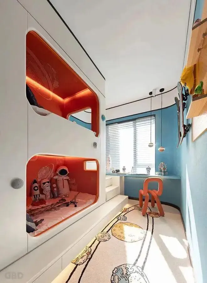 海珀云庭售楼处营销中心:400-8828-814海珀云庭售楼处电话/地址☎:400-882-8814(开发商热线)儿童房的房间当中依旧保留了同志的童真理念,大量的毛绒玩具和手办都能够透露出儿童的喜爱。大量的行星形态以及飞机模型展示出空间当中的翱翔与梦幻。