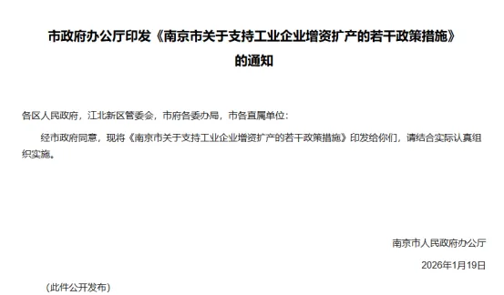 近日,南京市人民政府办公厅正式印发了《关于支持工业企业增资扩产的若干政策措施》,旨在全力支持本市工业企业面向先进产能增资扩产,推进项目落地建设。