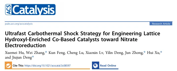 题目:Ultrafast Carbothermal Shock Strategy for Engineering Lattice Hydroxyl-Enriched Co-Based Catalysts toward Nitrate Electroreduction