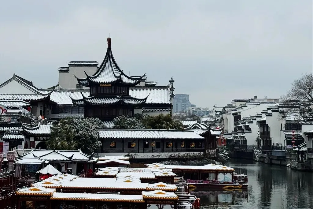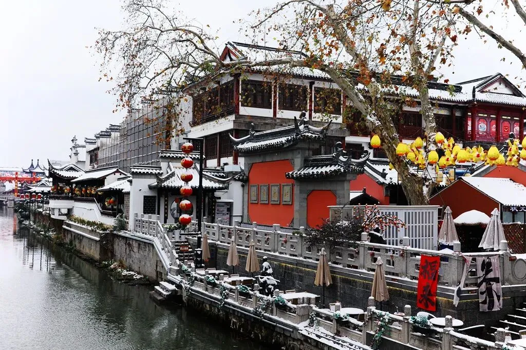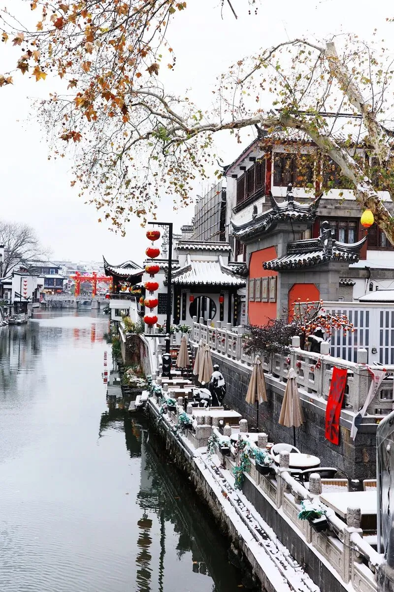 平时的夫子庙平平无奇,一下雪就不一样啦,美得很突出