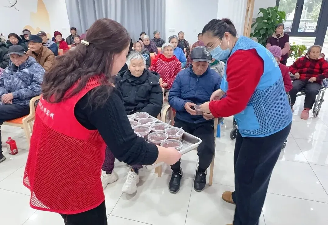 渭塘凤凰泾日间照料中心:凤凰泾日照的长辈们亲手熬煮腊八粥,慢火煨出谷物醇香,捧起自己熬的热粥时,眉眼间尽是满满的成就感。