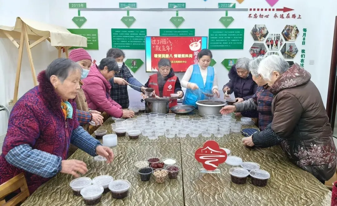 各点位腊八活动亦同步启幕,声声笑语落满厅堂,岁岁温情浸润时光,长辈们在融融氛围里,共度这满含暖意的腊八辰光。