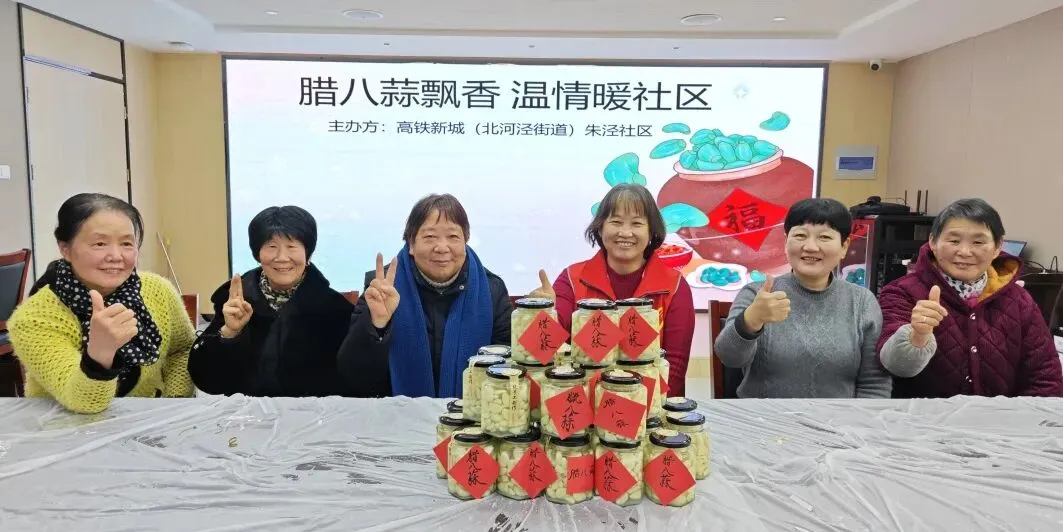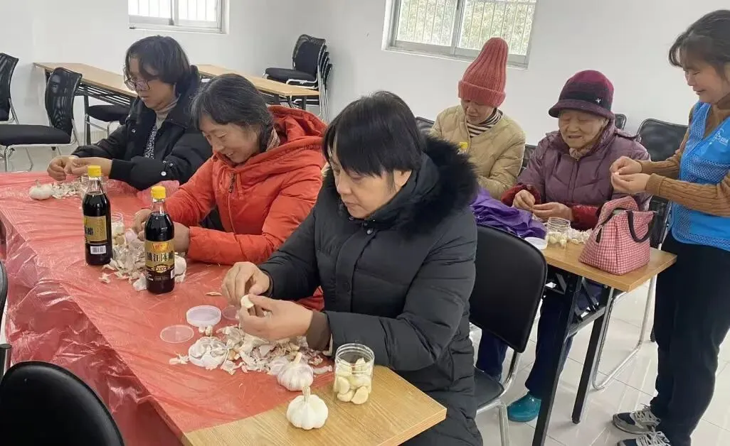 在朗悦湾日间照料中心,长辈们围坐在一起剥蒜、腌蒜,言笑晏晏间,晕染开一屋子的烟火清欢。那一罐罐封好的腊八蒜,是冬日里最温柔的年味约定。