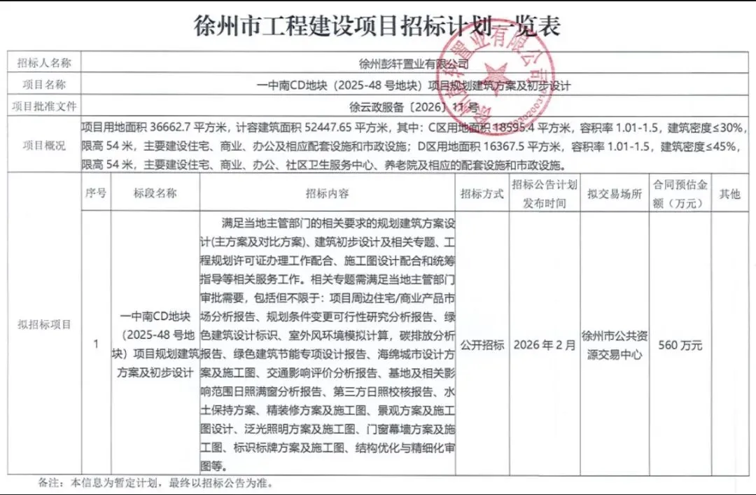 最近徐州新城区有个好消息:一中南CD地块终于要动起来了!徐州市公共资源交易平台刚发了这个地块的规划设计拟中标公告,2月份就要正式招标,意味着这块闲置4年的地终于要开工建设了。
