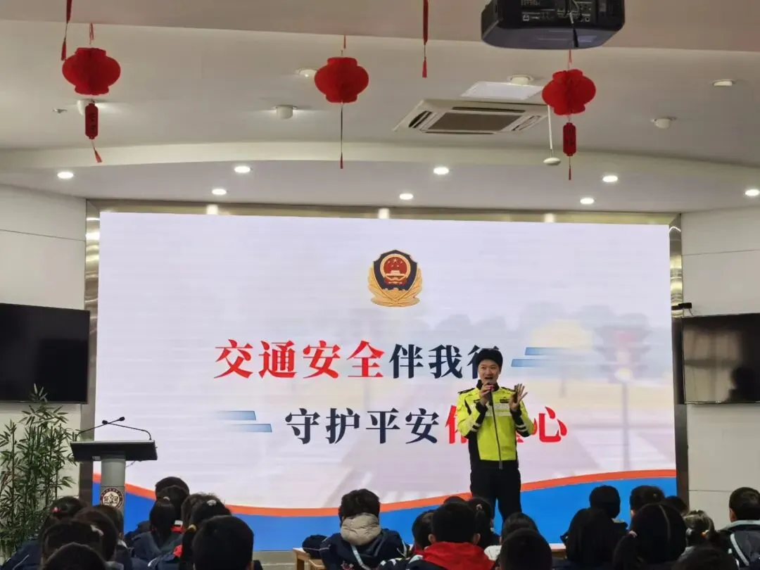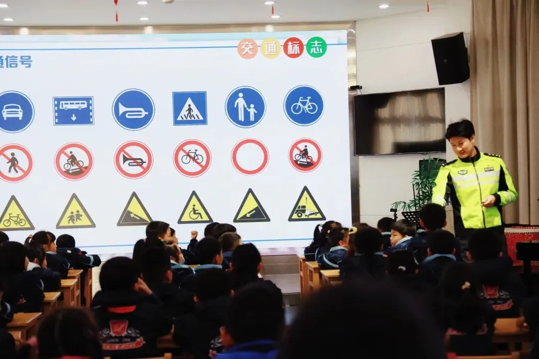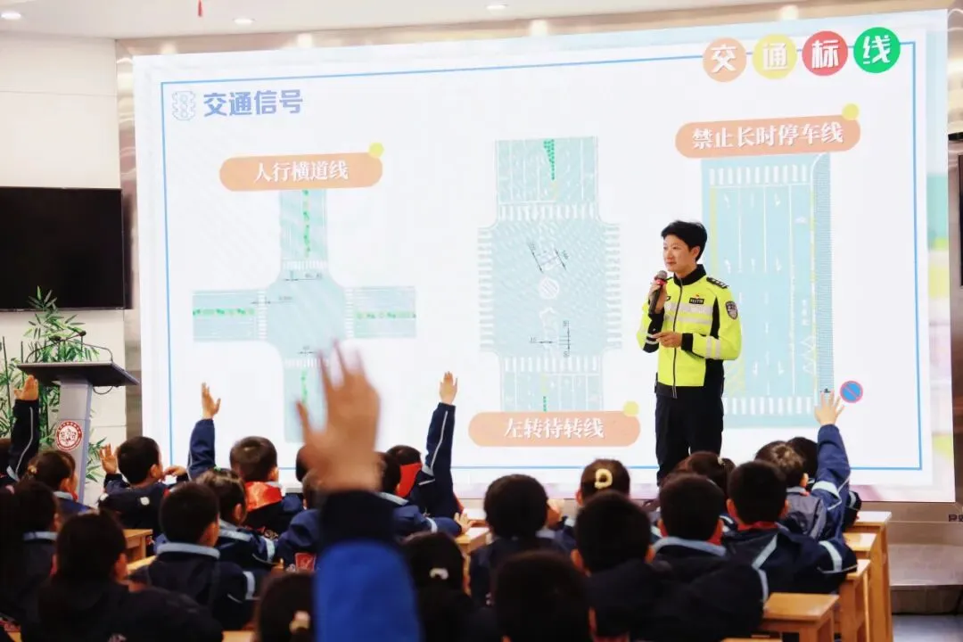 在交通常识互动问答环节,孩子们争相举手,气氛热烈。“乘坐汽车时应该注意什么?”“过马路要走什么线?”面对问题,小交换生们对答如流,展现出丰富的交通安全知识储备。