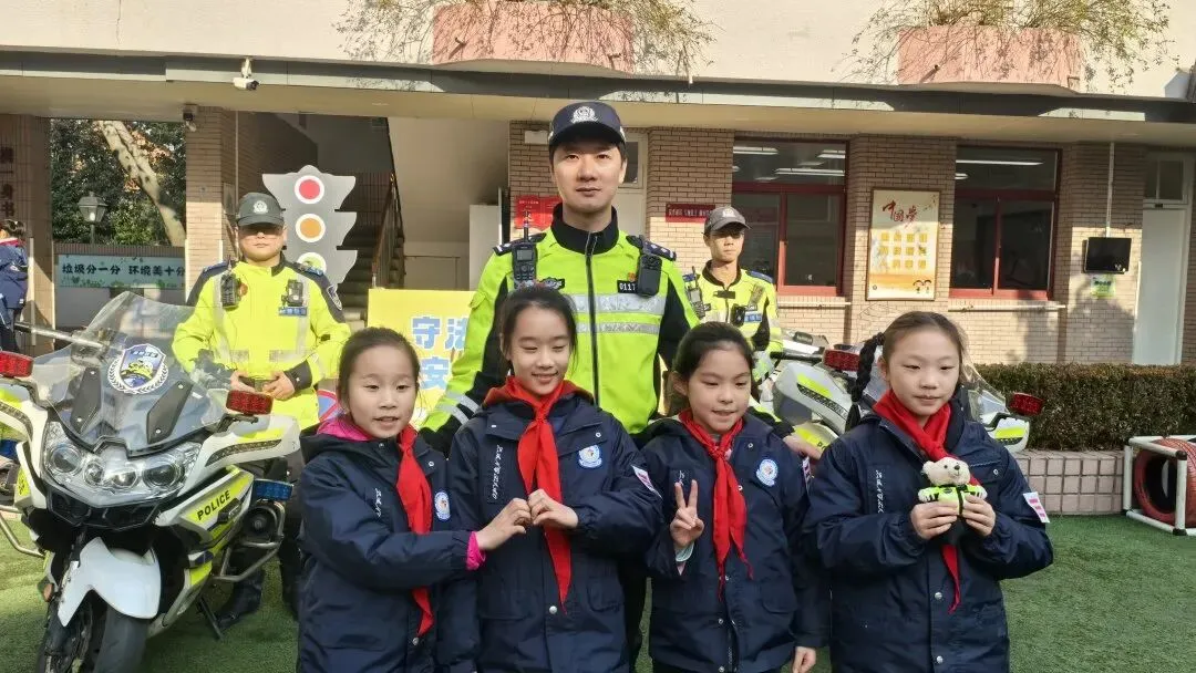 今天,我们上了一堂别开生面的交通安全课。李超叔叔带我们学习了交通指挥手势,认识了交通标识,还让我们近距离接触警用摩托车……交通安全关乎你我他,我们要遵守交通规则,争做新时代文明交通好少年!