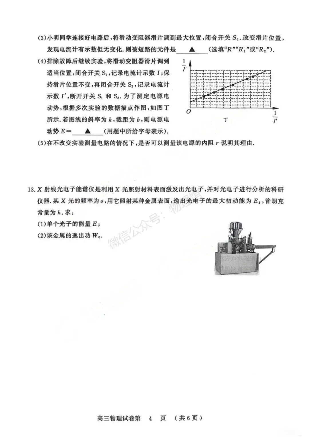 2026届南京市、盐城市高三期末调研物理试题及参考答案