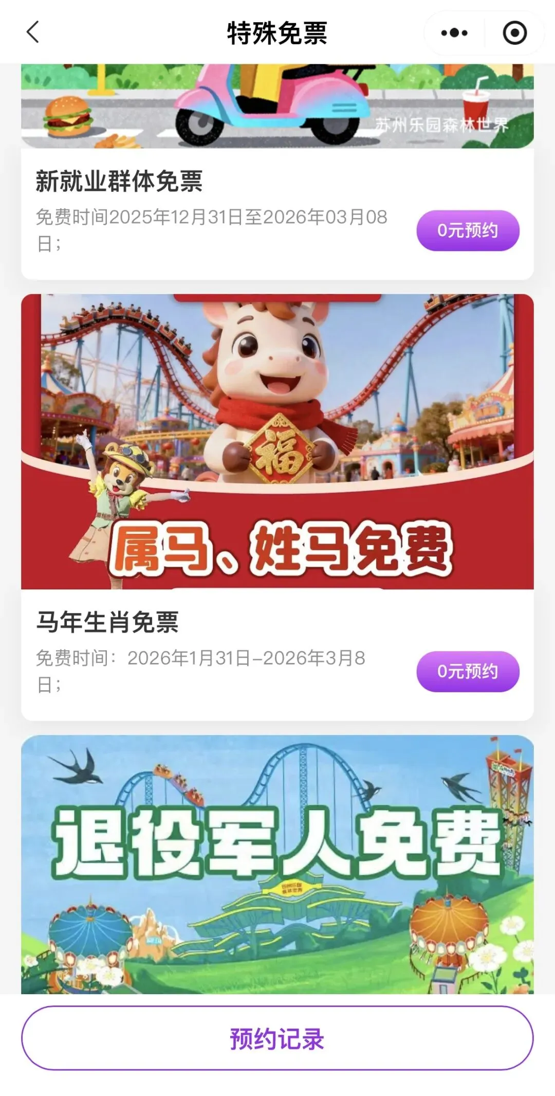 ② 操作流程:至少提前一天17点前在了不起的苏州乐园小程序上预约(首页中间-选择“特殊政策”),预约时填写本人姓名、身份证号、以及手机号,上传符合要求的身份证正反面照片后,进入审核流程。审核通过后,出游当天持本人有效相关证件及本人二代身份证,前往景区检票通道入园(仅限预约当天使用),每天预约入园人数限量100名。