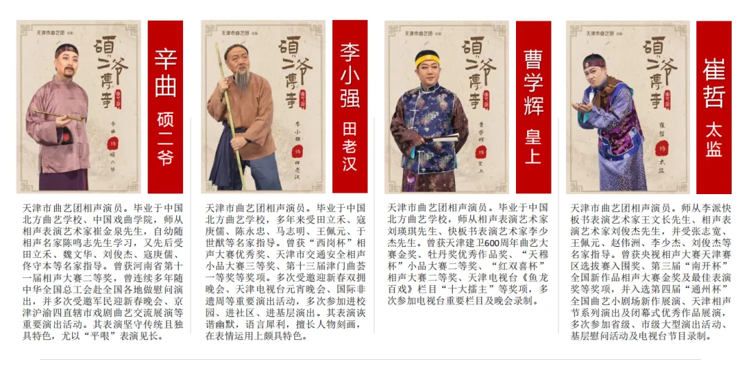 还在等什么?赶紧约上亲朋好友,走进剧场,与这位充满智慧与喜感的“硕二爷”相遇!看他如何用天津式的幽默与智慧,在嬉笑间化解危机,演绎一段令人捧腹又暖心的传奇故事。保证让您开怀大笑一整晚,烦恼忧愁全忘掉!
