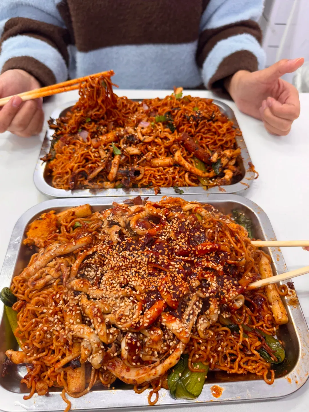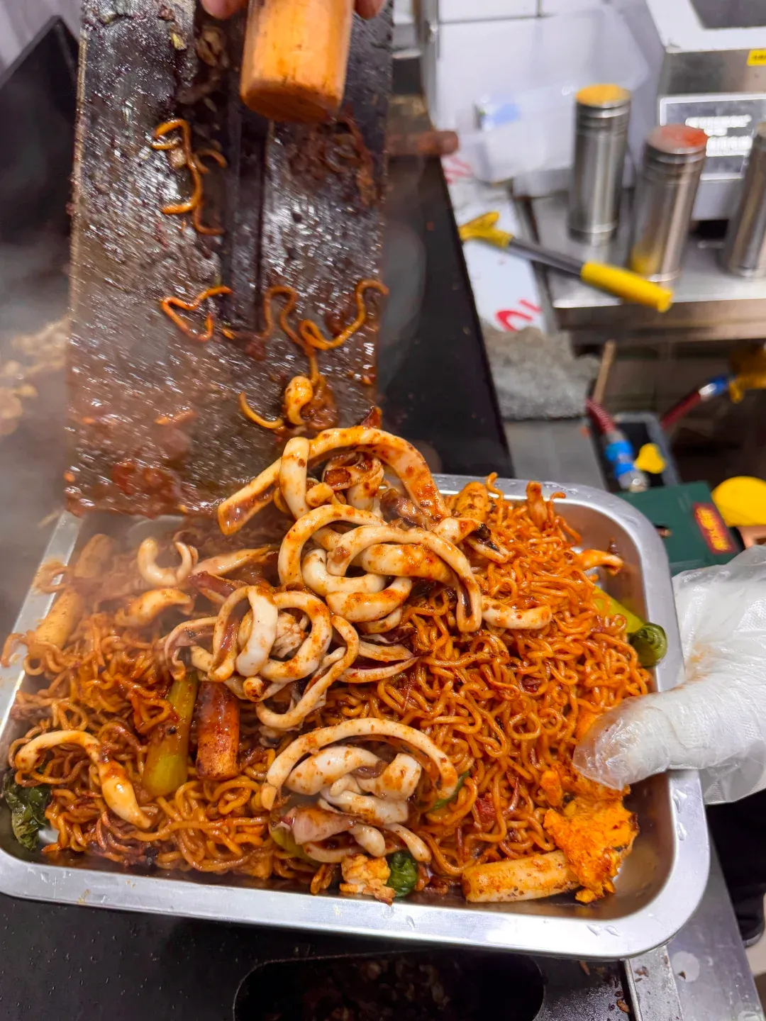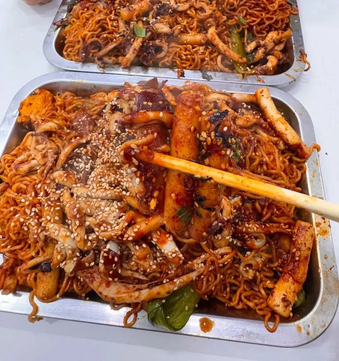 🤯 满满一层鱿鱼盖在上面,🌶️鱿鱼➕面的双倍快乐🍚