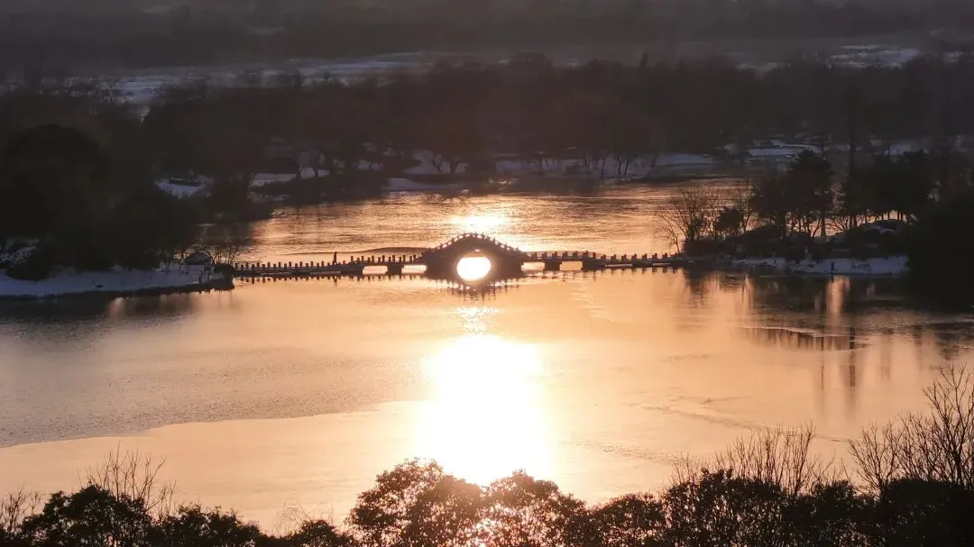 夕阳恰好穿过拱桥的圆孔,在水面投下一个完美的光斑,这大概是云龙湖送给有心人最浪漫的礼物