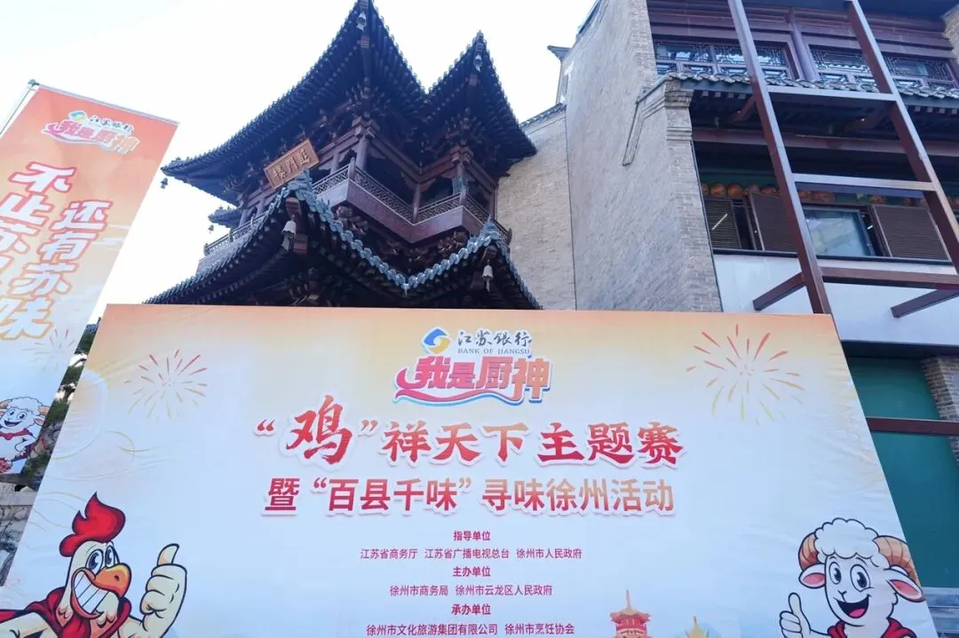 在徐州彭城七里饮食文化博物馆广场举行的“我是厨神”“鸡”祥天下区域主题赛,突破省域界限,特邀苏、皖、鲁、豫四省交界区域10个城市组队参赛!各地名厨携特色技艺齐聚徐州,以“鸡”或“羊”为主题同台竞技。现场香气四溢,每一道菜品都经过精心摆盘,造型别致、色彩诱人,宛如艺术品陈列。网络大V穿梭其间,通过直播镜头向网友展示这场“可看可尝”的盛会,而围聚一旁的市民们也纷纷上前品尝,欢声笑语中洋溢着浓浓暖意。