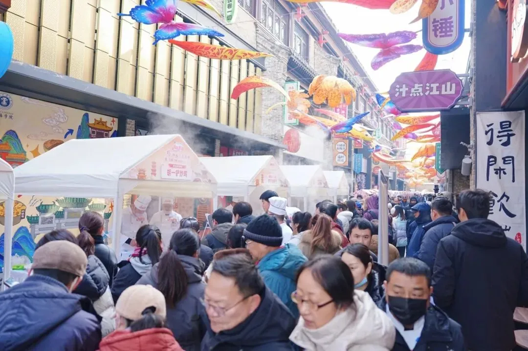 这个周末,彭城七里饮食文化博物馆广场还同步举办“百县千味”促消费美食市集。徐州各县区的地标美食、老字号、非遗产品与知名品牌齐聚一堂,现场品鉴与展销同步进行。徐州酱香米线、便携式蒜爆鱼汁与地锅鸡酱料等特色产品,让“徐州味道”变得可携带、易分享。市民游客穿梭于各摊位之间,边逛边吃,一次就能打卡最地道的徐州风味与文创精品。