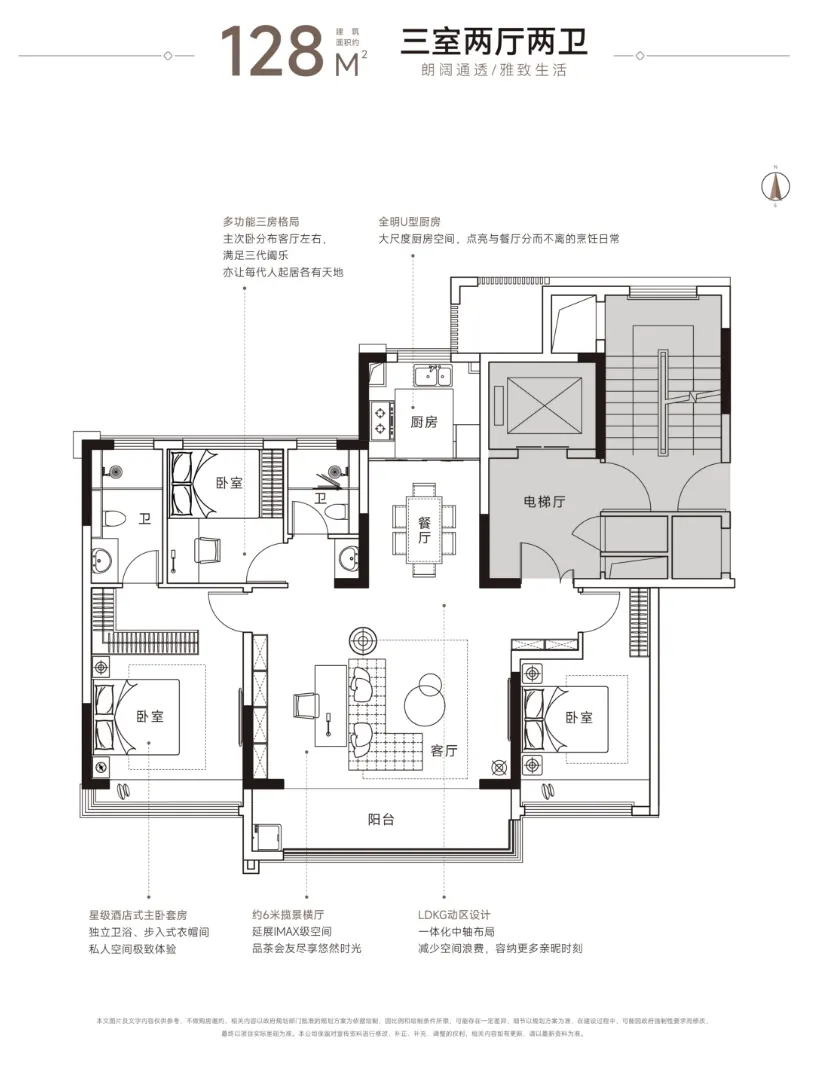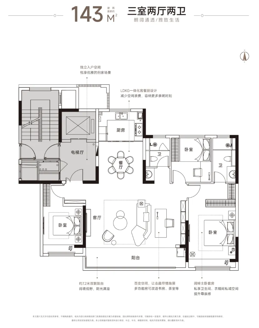 对于改善生活的客群而言,建面约128㎡、143㎡三房不失为好选择,大面宽、大横厅、阔绰的卧室空间,都是标配。