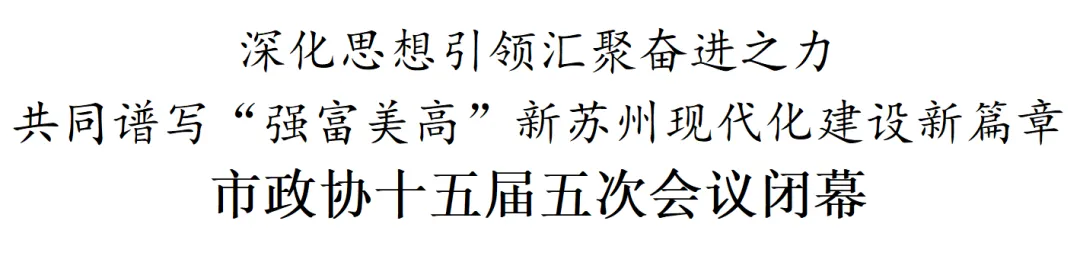 在闭幕讲话中,朱民说,会议期间,各位委员以强烈的政治担当和饱满的履职热情,认真听取讨论了中共苏州市委书记范波同志的讲话,审议通过了常委会工作报告和提案工作情况报告,列席了市十七届人大五次会议,听取并讨论了市委副书记、市长吴庆文所作的政府工作报告及其他报告。大家紧紧围绕助推“十五五”开好局、起好步,紧扣我市经济社会发展中的重大问题和人民群众关切的热点难点,深入协商议政,踊跃建言献策。会议始终充满着民主、团结、求实、奋进的良好氛围,是一次高举旗帜、共谋发展、凝心聚力、开拓进取的大会。