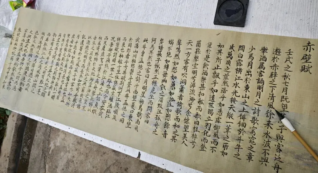 蘇这个字有鱼水、有禾草,有灵动跳脱、又并着欣荣葱翠,繁体字的笔法把形神刻画纸面上。草纸铺就,赤壁赋起。在自家菜园兼任花园的“书房”里,大自然造景远处,笔墨熏陶眼前,一个下午的太阳被我用尽了,莫不惬意。看着早已为人母的朋友偷偷撤回的艳羡评论,我究竟是多么闲暇的存在啊!造物主无尽藏也,苏轼且举杯狂醉,遥清风明月和歌,而我,也在伟大故事的余韵中,狂欢笔尖,接受一切赞美。