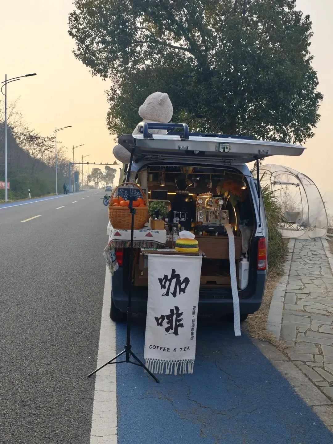 咖啡店老板是开着一个车摆摊