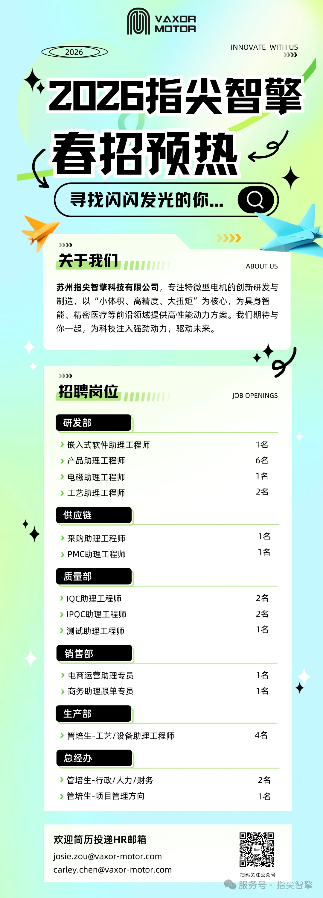 >招聘 | 苏州指尖智擎科技有限公司2026年校园招聘 人力 质管 财会等相关专业可投