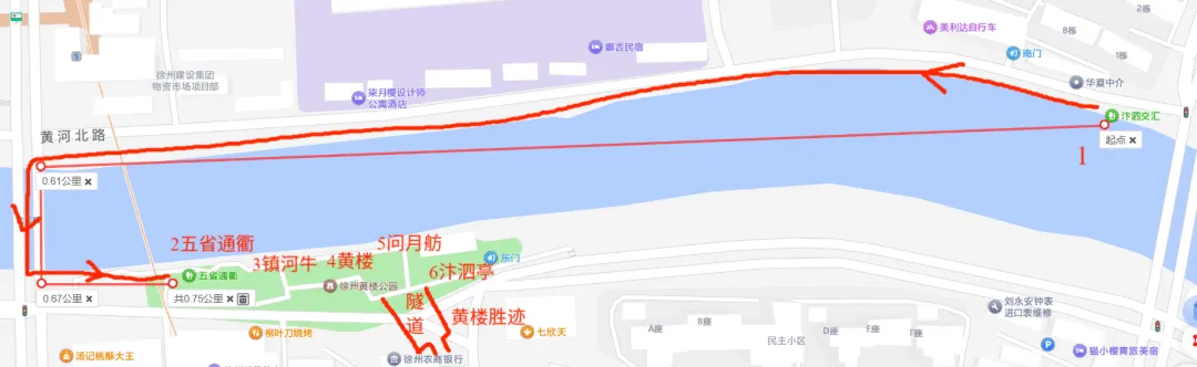 徐州黄楼公园及周边关联景点(汴泗交汇碑、五省通衢牌坊、镇河铁牛、问月舫、苏轼抗洪浮雕群、汴泗亭)