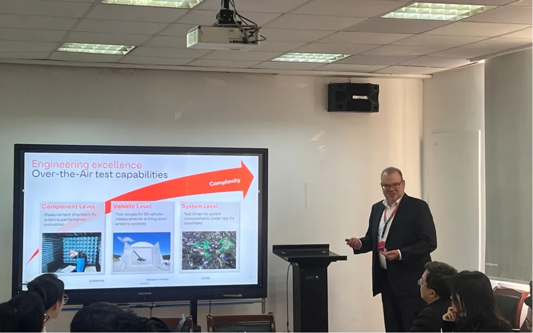 随后,Gerald Schillmeier总监聚焦欧摩威天线事业部,深入介绍了其研发团队实力、核心产品体系及未来产品战略布局。他希望依托学院在相关领域的科研优势,联合组建研发团队、攻克技术难题,推动产品创新升级。