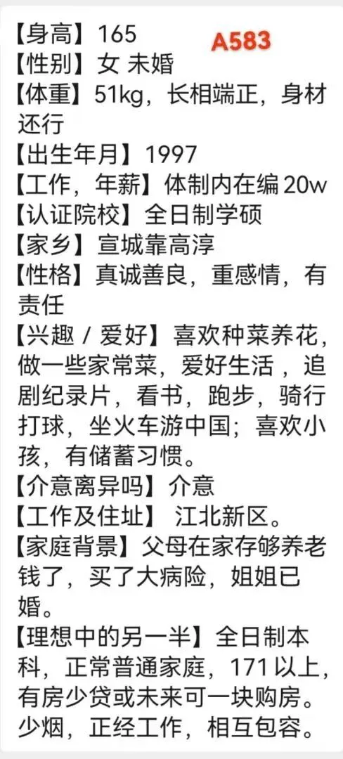 南京脱单|97年,女,身高165,硕士学历,体制内在编工作,目前在江北区