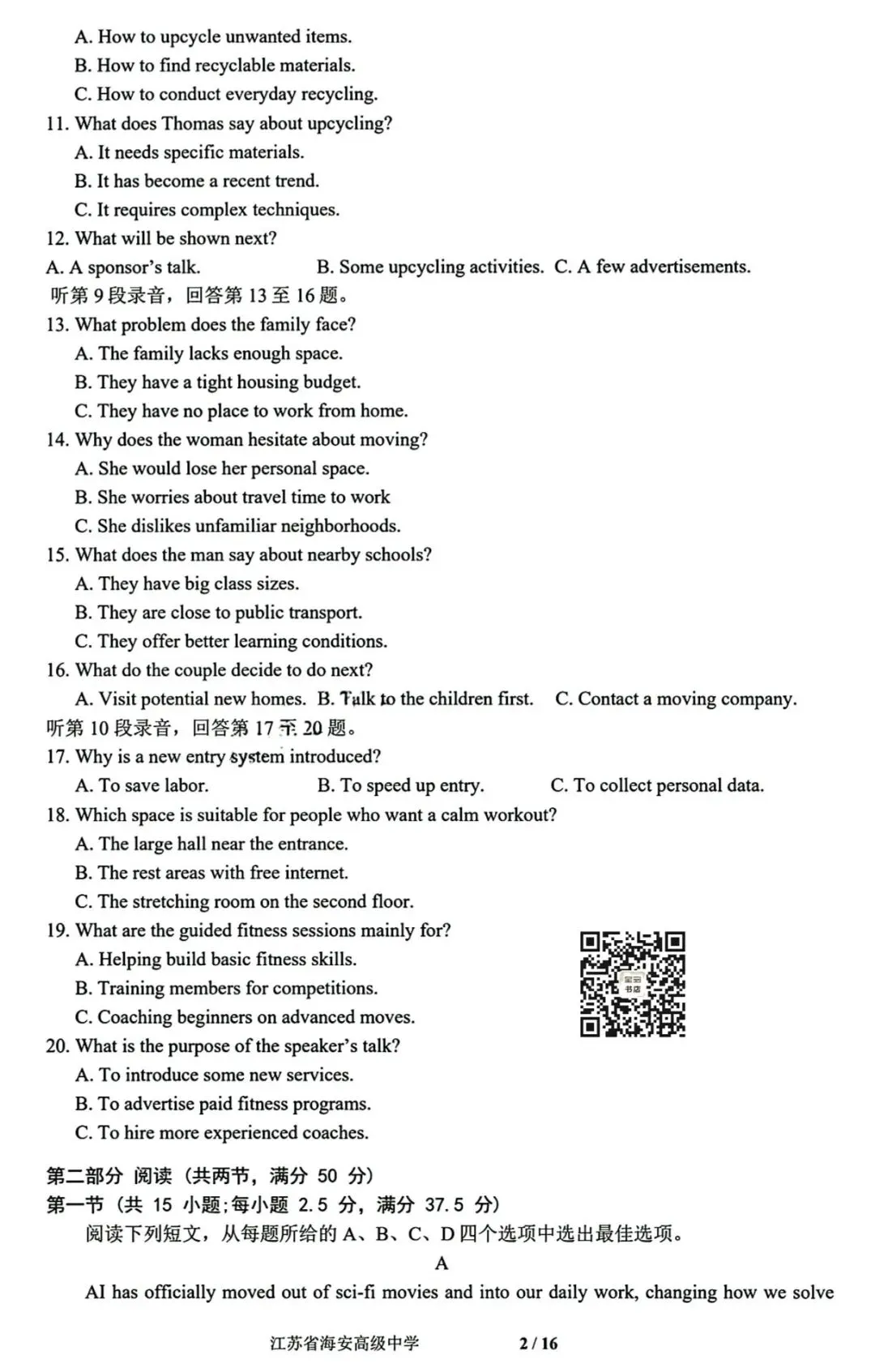 【天一小高考】2025-2026学年(上)高三年级(二)‖全科(含听力音频)