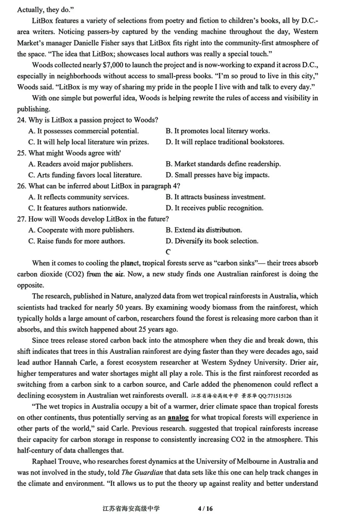 【炎德·英才大联考】湖南省长沙市雅礼中学高三月考(四)‖全科(含听力音频)
