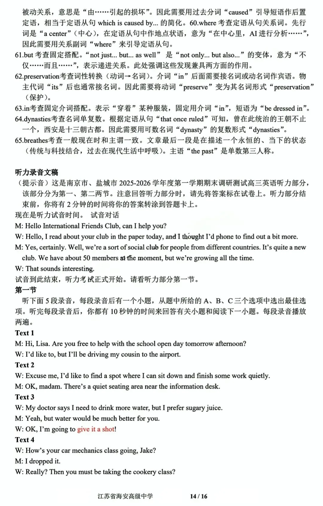 【江苏省苏州市】2026届高三年级期中阳光调研试卷‖全科(含听力音频)