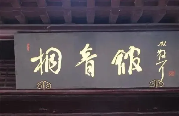 这块匾额用的就是草书,我当时第一眼看的时候还以为是“桐香馆”,后面再看发现不对,第二个字不像是香字的写法,竟是看错了。