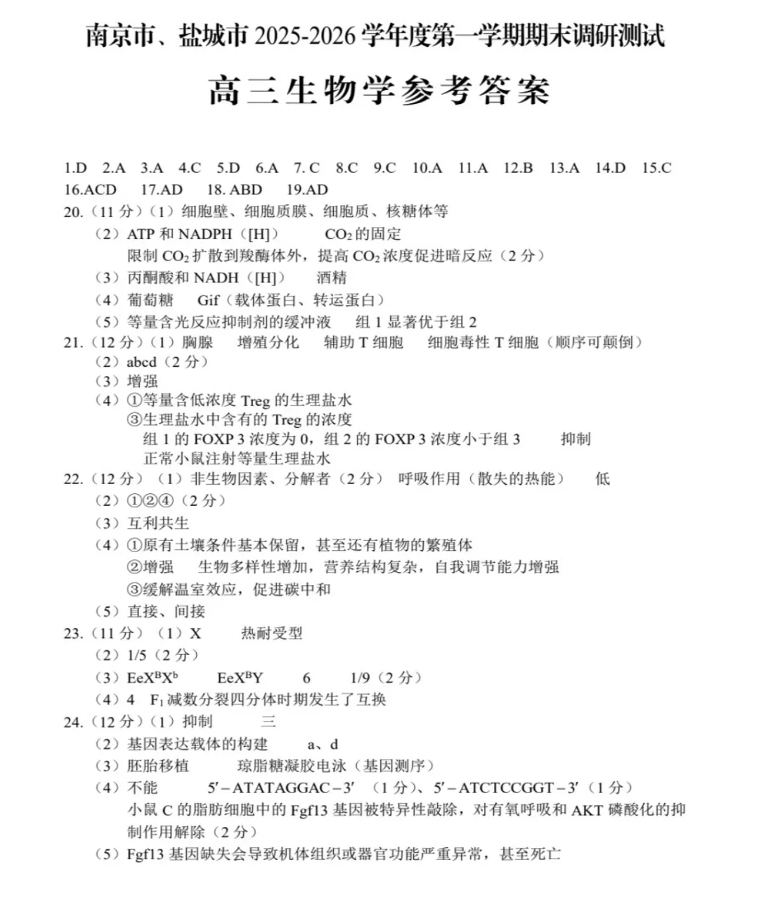 9科全!2026南京盐城高三上期末(老一模)语文数学英语、物理化学生物、政治历史地理试卷+答案+听力