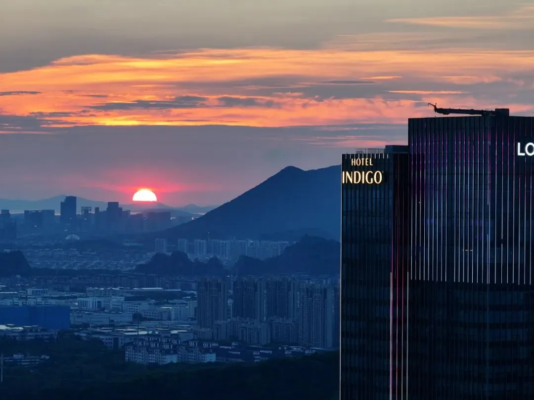 作为英迪格在苏州的首家酒店,占据着龙湖中心的“顶流段位”——32-46F;其中,大堂及大堂吧、全日餐厅都位居46F,将广阔视野作为入住礼,赠予每位客人,开启“云端”居停模式。晴好天气时,日出日落霞光满城,入夜后绚烂景致更是梦幻!