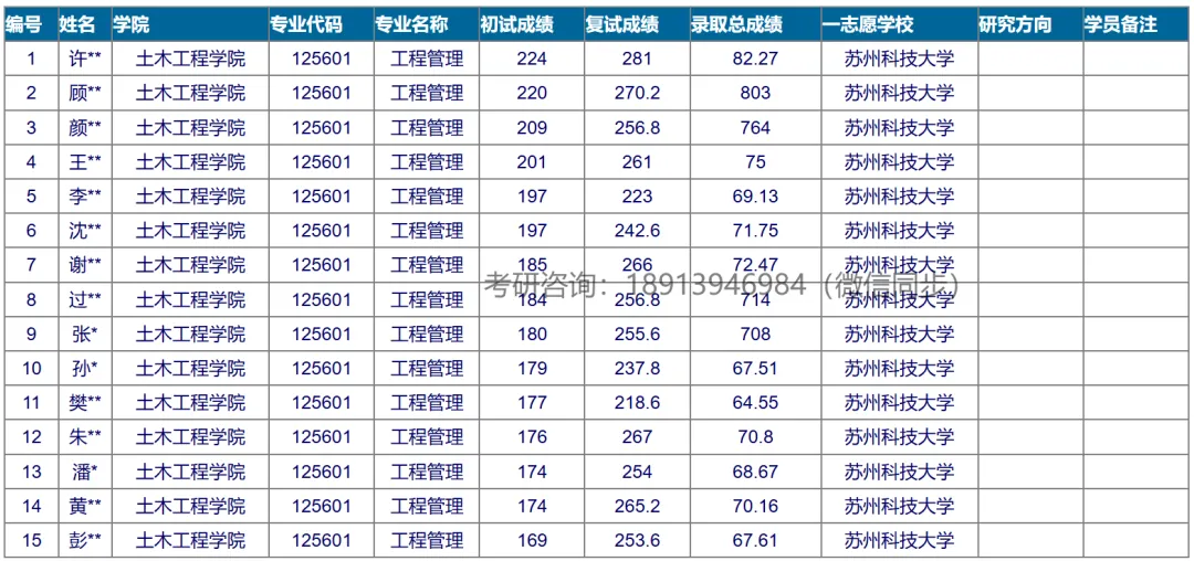 2025年苏州科技大学(非全MEM考研)录取分数和名单