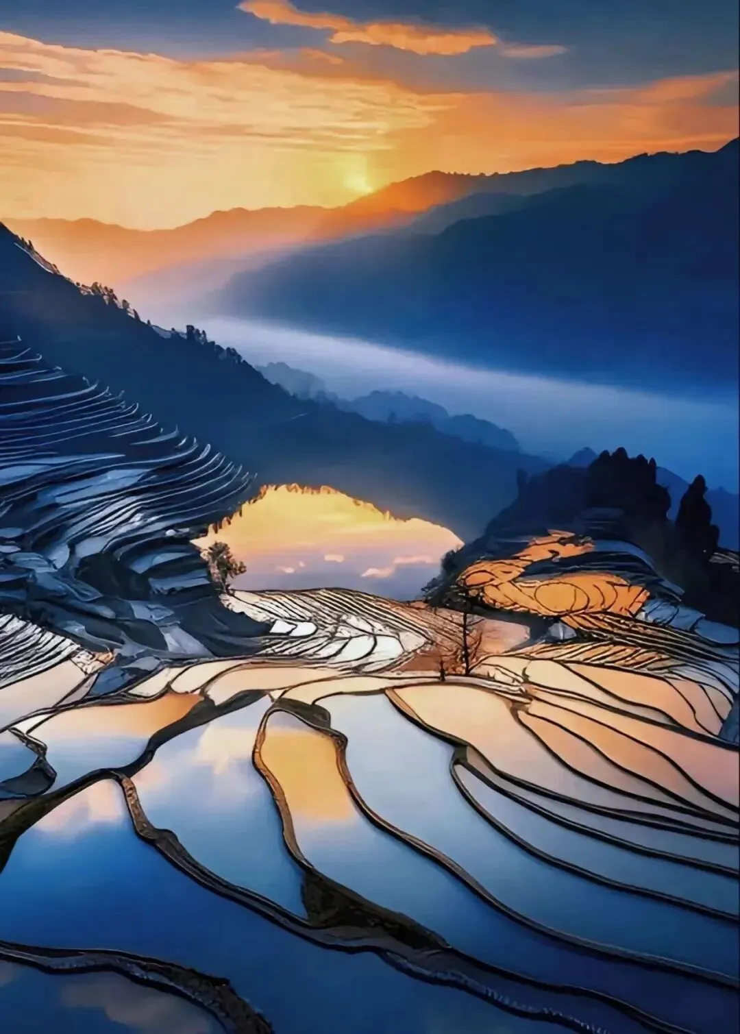 深入全球摄影师的朝圣地一【元阳哈尼梯田】。在3月最佳观赏季,捕捉日出日落时分,万亩梯田如镜面般反射天地光影的魔幻时刻。