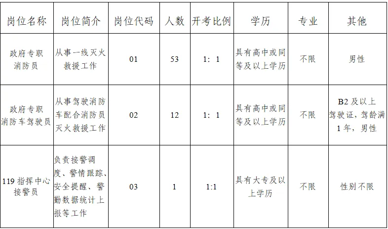 因工作需要,苏州市消防救援支队(张家港市消防救援大队)现面向社会公开招聘政府专职消防员66名,现将有关事项公告如下: