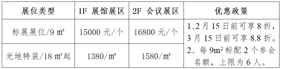 备注:光地及特装展位不含设计、搭建和展具租赁费用。