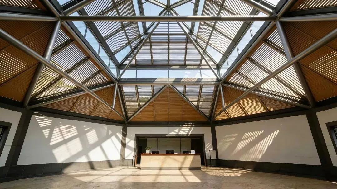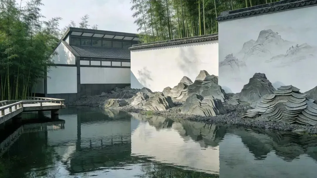 中央大厅的八角立体几何屋顶是建筑的点睛之笔,脱胎于传统立贴式梁架,却用钢与玻璃重构,自然光透过木格栅与玻璃倾泻而下,在地面形成斑驳的光影,宛如江南园林中的树影婆娑。主庭院的 "片石假山" 更是神来之笔,贝聿铭以 "以壁为纸,以石为绘" 的理念,用简洁的片石勾勒出山水画的意境,与池塘、小桥、竹林共同构成一幅流动的江南水墨画。