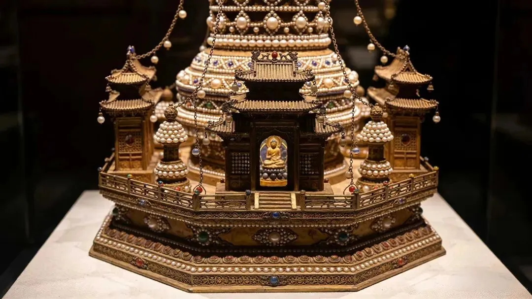 镇馆之宝中,北宋真珠舍利宝幢堪称稀世奇珍,高 122.6 厘米,由须弥座、佛宫、塔刹三部分组成,以七宝连缀,装饰珍珠约 4 万颗,内藏舍利子,工艺精巧至极,被列入第三批禁止出国(境)展览文物。五代秘色瓷莲花碗则展现了越窑青瓷的巅峰水准,碗身线条流畅,釉色温润如玉,如冰似雪,是 "夺得千峰翠色来" 的生动写照。