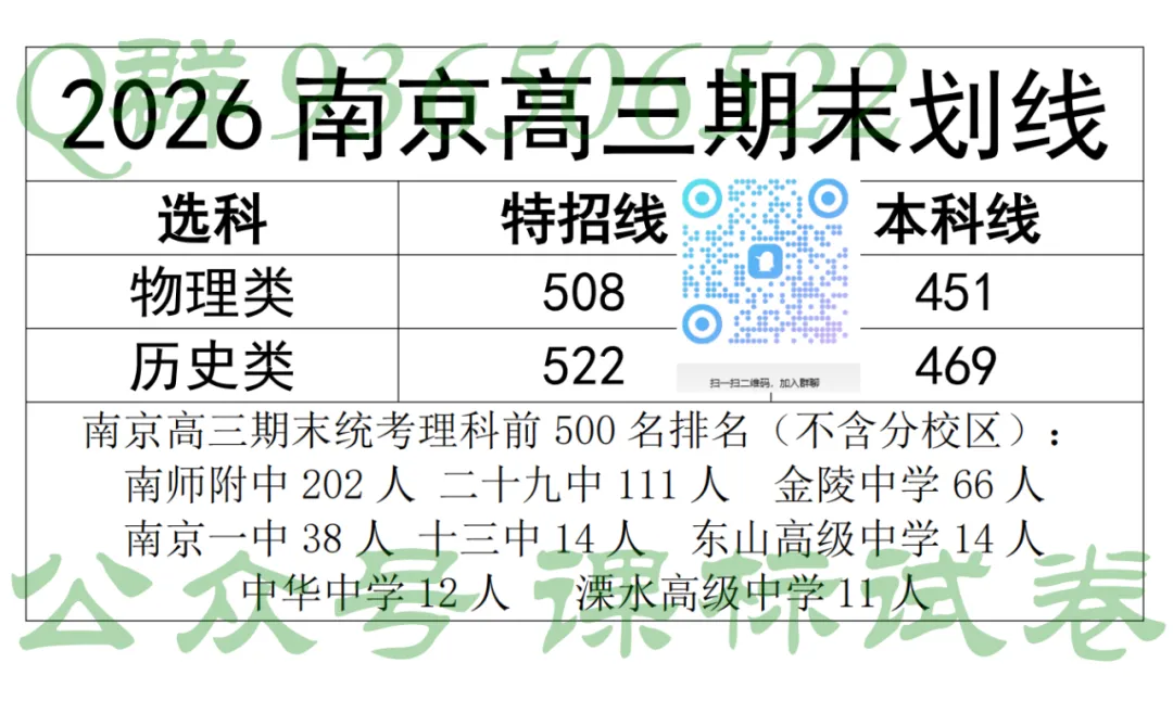 南京高三一模期末分数线!(盐城同卷不同分!)