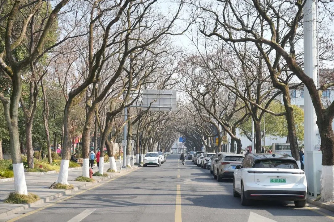 梧桐树荫铺满整条街,傍晚的水母灯亮起像梦幻森林。慢悠悠走在非机动车道旁,阳光透过枝叶洒下斑驳光影,随手拍都是电影感画面。