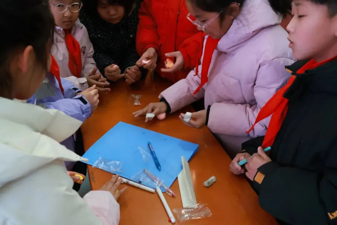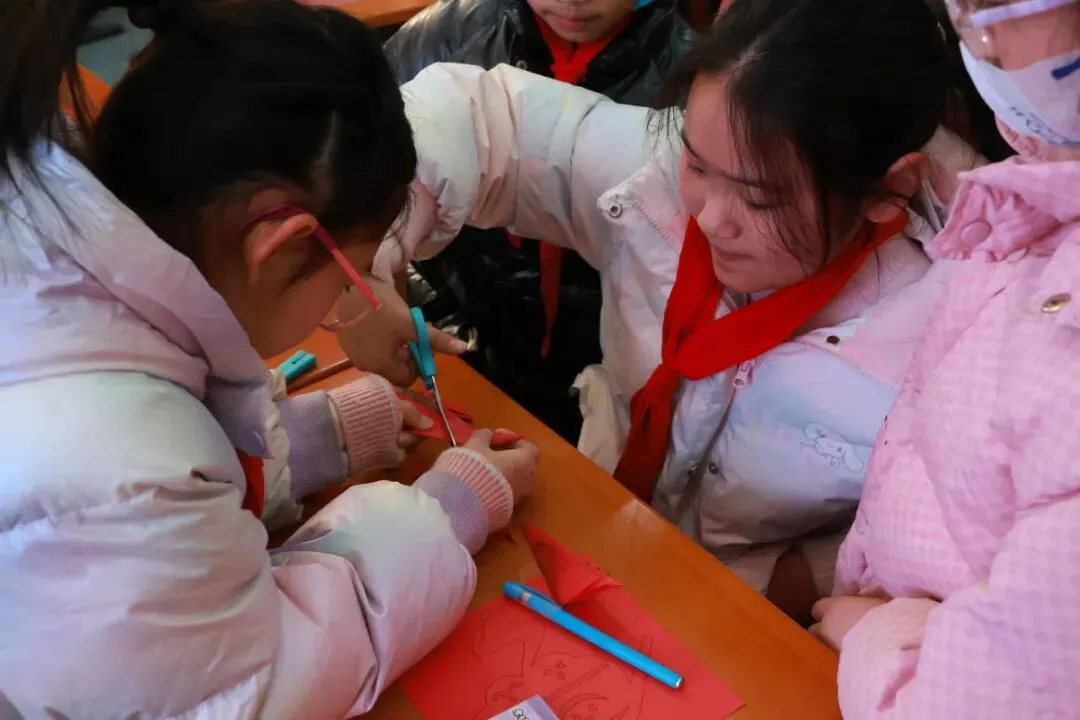 接下来的实践环节中,孩子们分组协作,借助超轻黏土和剪纸等材料,依次体验了“蒙眼捏小鸭”“缠手捏小鸟”和“单手剪窗花”三项非遗手工项目。每个小组长模拟残障匠人的身份,在其他组员有限协助下独立完成一件手工作品,并参与评选,每项活动均选出最精美的手工作品。通过这样的沉浸式体验,孩子们真切感受到残障群体在创作过程中面对的种种困难,心中也油然生发出对残障艺术家的敬意。