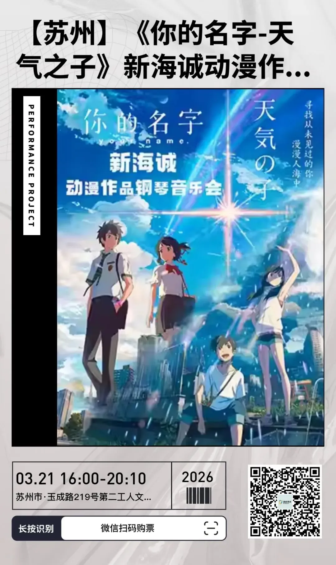 【苏州】《你的名字-天气之子》新海诚动漫作品钢琴音乐会