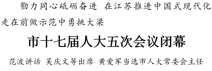 苏州市第十七届人民代表大会第五次会议举行第三次全体会议,大会圆满完成各项议程后闭幕。