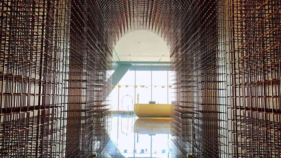 隈研吾风格的框架结构,不过把木质换成了金属,日系杂糅了工业风