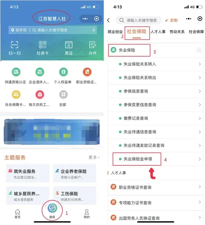 1.江苏智慧人社APP:通过“服务一社会保险一失业保险一失业保险金申领”模块办理。