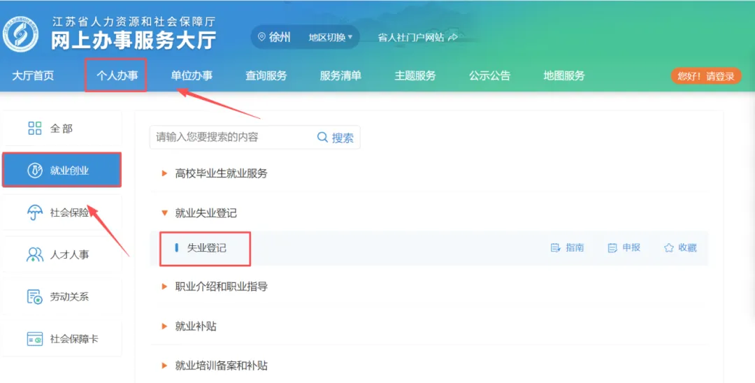 申领失业保险金前,请先确认已办理失业登记,可登录江苏智慧人社小程序或者APP、“江苏省人力资源和社会保障网上办事服务大厅”,“个人办事—就业创业—就失业登记—失业登记”进行申报。