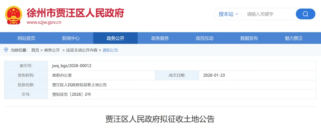 根据《中华人民共和国土地管理法》《中华人民共和国土地管理法实施条例》《江苏省土地管理条例》有关规定,因公共利益需要,经贾汪区人民政府决定,启动土地征收工作。现将有关情况公告如下: