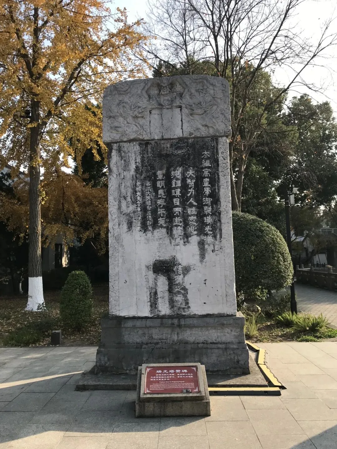 我有苏州休闲年卡,不用花钱买门票。我扫码进了检票口后,看到左侧有一座古朴的御碑,右侧有一座白牛雕像。明太祖的御碑历经沧桑,碑上的字迹斑驳不清。白牛是2000年后的产物,没什么历史价值。