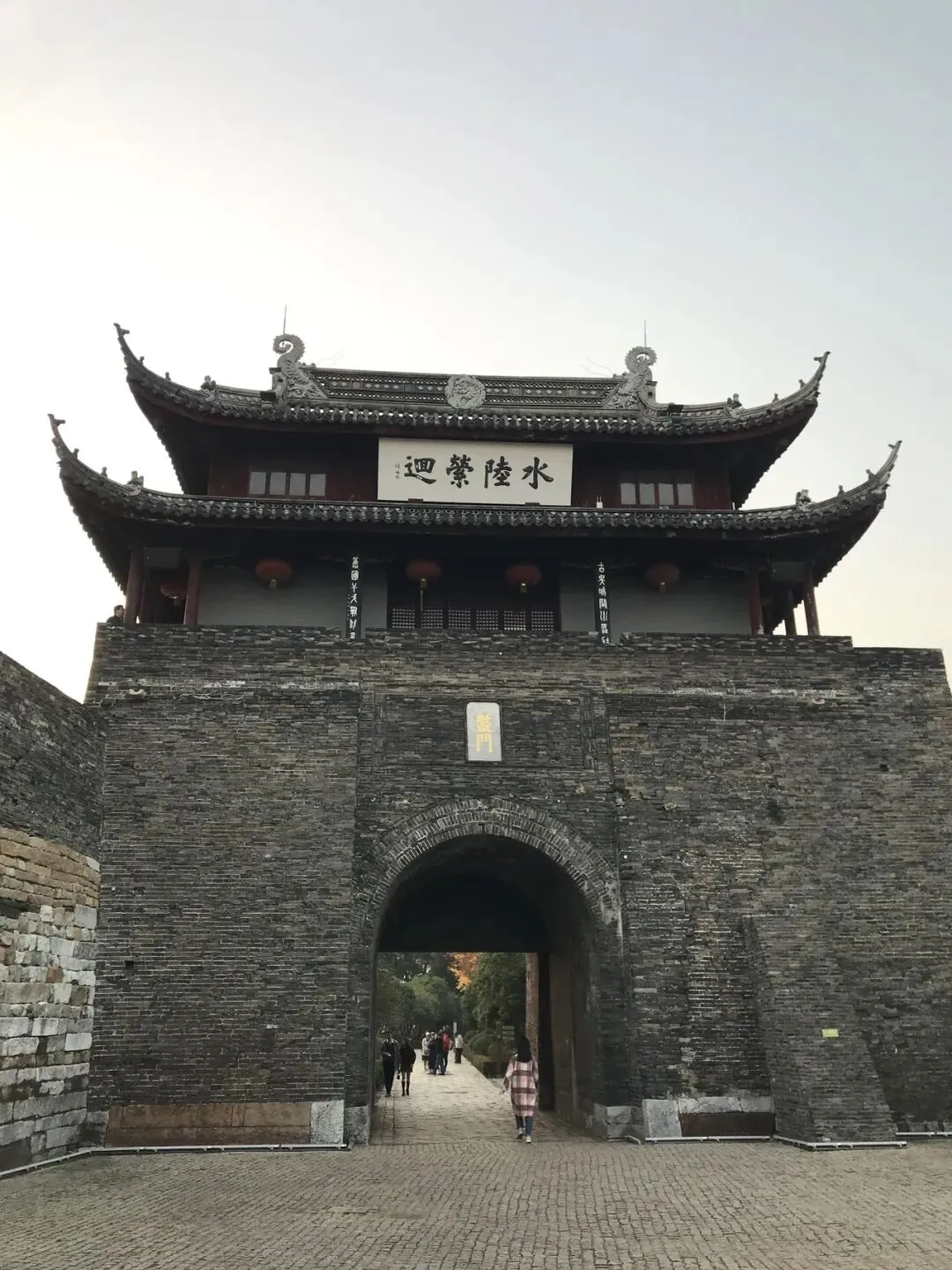 路过太极放生池、丽景楼、碧波桥,我来到了水陆古城门。水陆古城门是盘门景区最有历史价值的景点。春秋时期,吴王阖闾让伍子胥修筑吴国都城。盘门是吴国都城的八门之一,门上曾悬挂着木制蟠龙,因此古称蟠门。盘门的水陆古城门分为陆门和水门。如今,苏州原来的八门只剩下盘门了。盘门是全国现存唯一的水陆并联古城门。