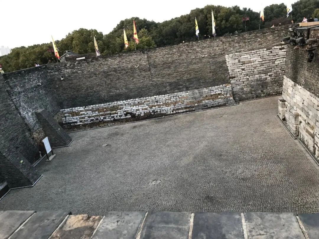 我第一次看到了书上和网上所说的瓮城,深刻理解了瓮中捉鳖的含义。瓮城的下部分是石头,上部分是砖头。瓮城下部分的石头有些破旧,看起来年代久远。瓮城上部分的砖头相对完好,看起来年代较近。据导游说,古代因为经常发生战乱,所以就需要修补城墙。每个朝代修城墙用的建筑材料不一样,每个朝代的建筑材料风化程度也不一样,因此就形成了眼前的样子。