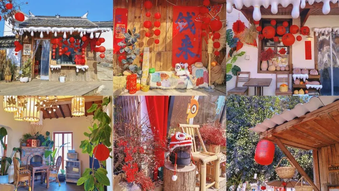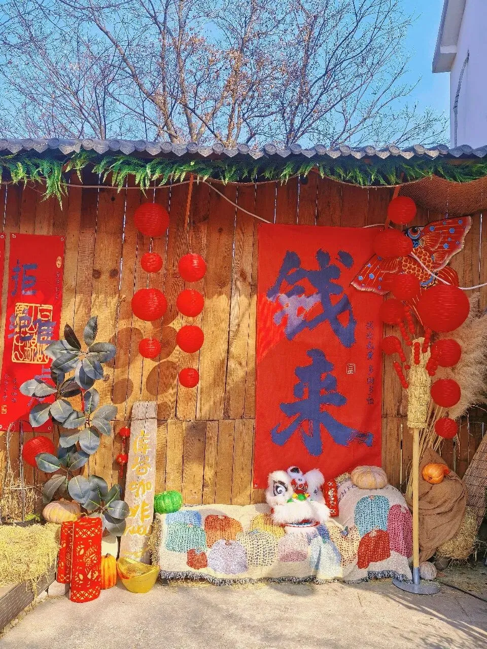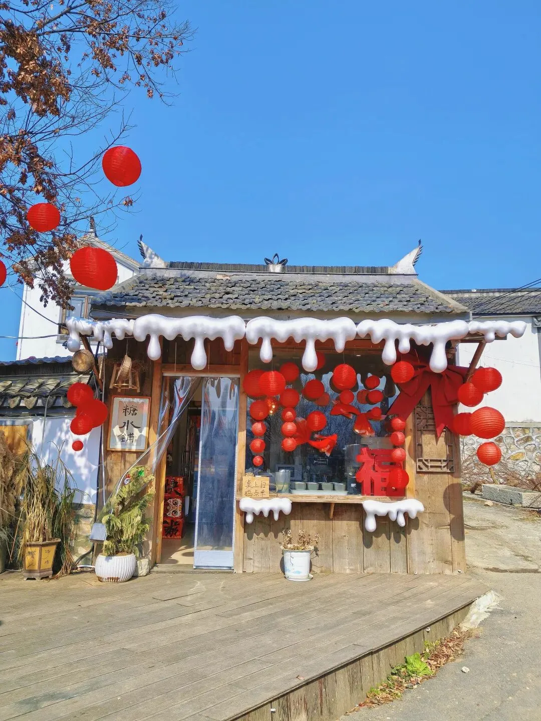 4️⃣小满糖水铺:新中式小院年味封神!门口大红灯笼+福字装饰氛围感拉满,站在门口拍全身照,红色与木色碰撞,新中式大片直接出炉!
